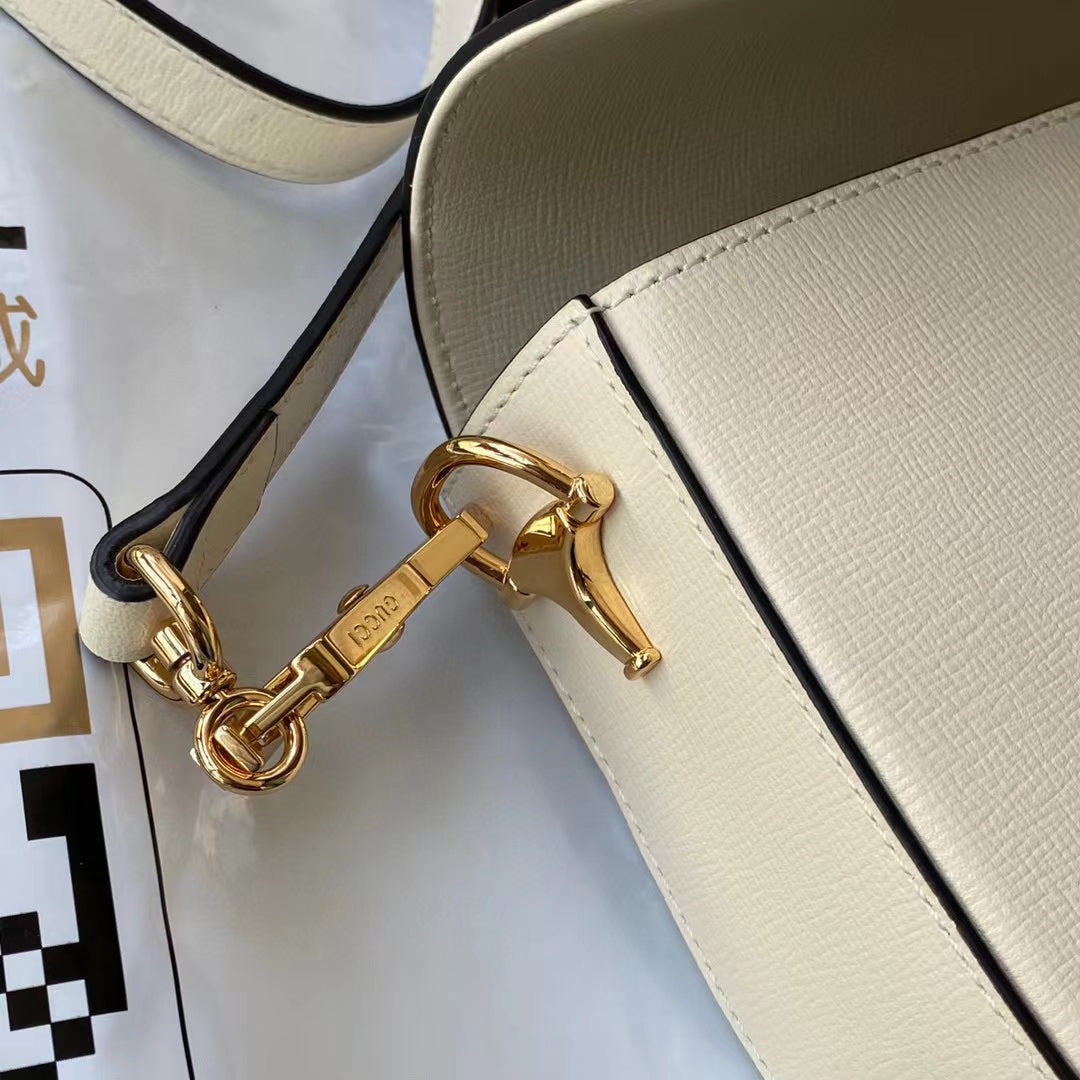 Petite versions of the Gc Horsebit 1955 add a hybrid twist to the vintage inspired line. Enriched with two different shoulder straps. the white leather mini bag's character transforms from understated elegance with a tonal leather strap to a strong logo feel thanks to a red and green Web option.